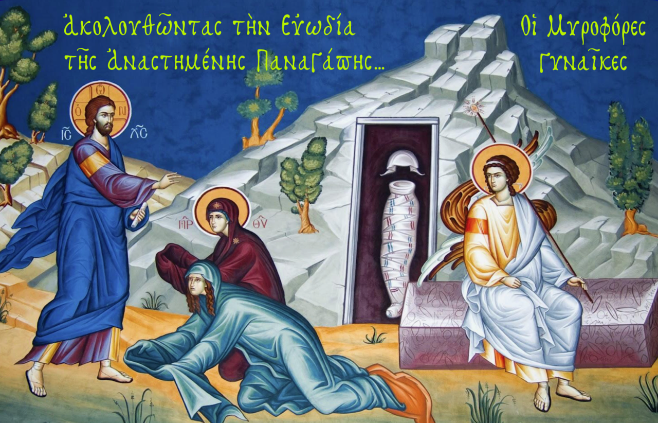 Η Μητέρα-Εκκλησία γιορτάζει, την 2η Κυριακή μετά το Πάσχα, το θαυμαστό υπόδειγμα Αγαπητικής αφοσίωσης και Ερωτικής γεναιότητας… των «Μυροφόρων Γυναικών» που δίδαξαν στους (άνδρες) Αποστόλους τί σημαίνει Θεϊκός Έρωτας…! Αυτές, αγνοώντας ακόμα -3η μέρα μετά την Σταύρωση και τον Ενταφιασμό του Θεανθρώπου Χριστού- το γεγονός της Αναστάσεώς Του, κι’ αψηφώντας τον μέγα κίνδυνο των Ρωμαίων στρατιωτών και των Εβραίων σταυρωτών… τόλμησαν να μεταβούν ξημερώματα στον Τάφο του Κυρίου. Σκοπός τους ήταν να αλείψουν με αρώματα το άψυχο σώμα της Σταυρωμένης Παναγάπης… που νόμιζαν ότι, λόγω της 3ήμερης αποσύνθεσης, ανέδιδε δυσωδία! Στον τάφο, όμως, βρήκαν το μνήμα του Χριστού κενό… και έναν «εξαστράπτοντα νεανία» (φωτοειδή Άγγελο) να τις πληροφορεί την εκ νεκρών Ανάσταση του Σταυρωμένου Θεανθρώπου…!